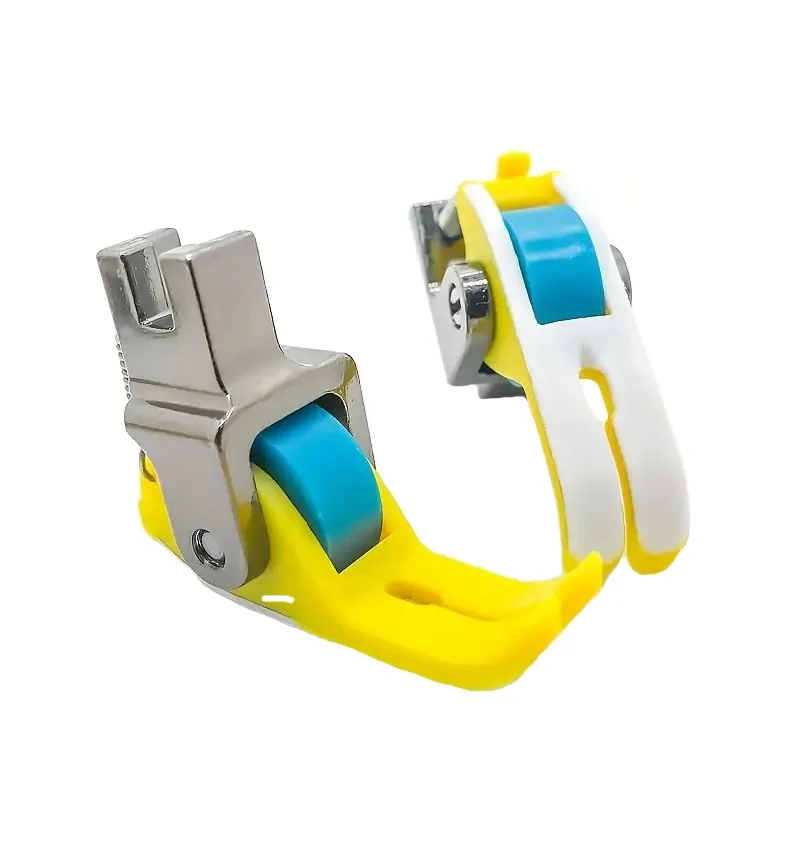 Лапка виготовлена з особливого полімеру, пластиковий ролик покритий спеціальним ковзним матеріалом, що робить її ідеальною для шиття з натуральної або штучної шкіри, пластику та інших подібних матеріалів, забезпечуючи високий ступінь ковзання і запобігаючи зміщенню двох тканин, що зшиваються відносно один одного і виключає нерівномірність стібків.