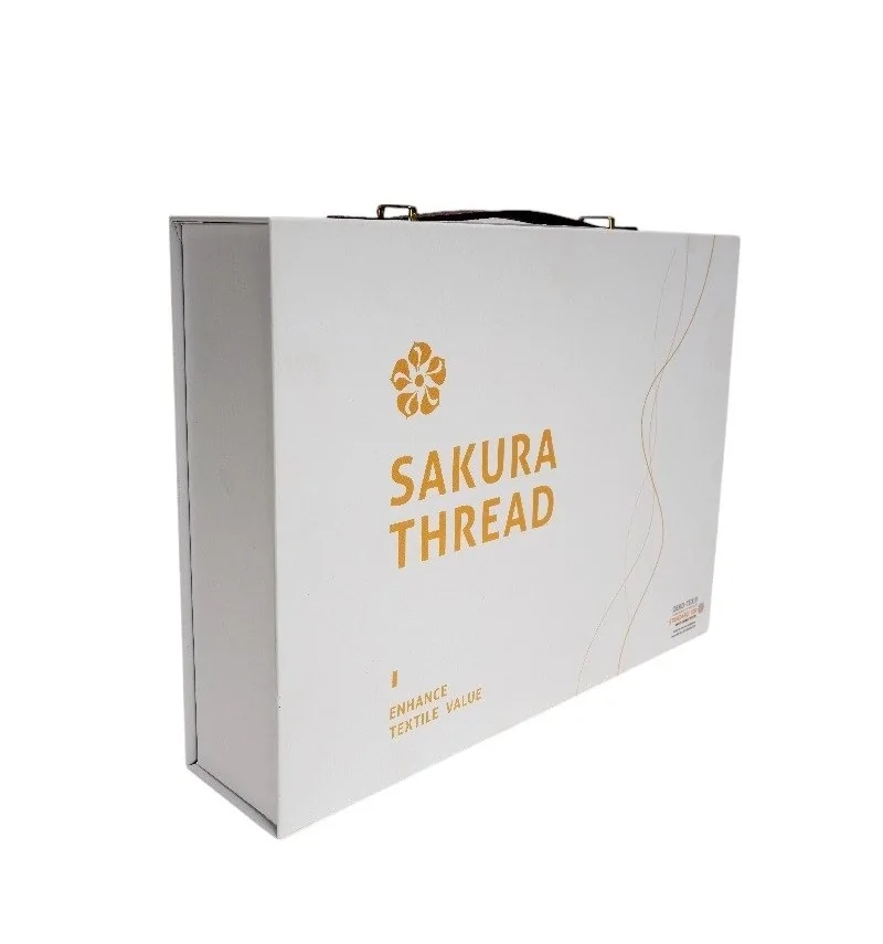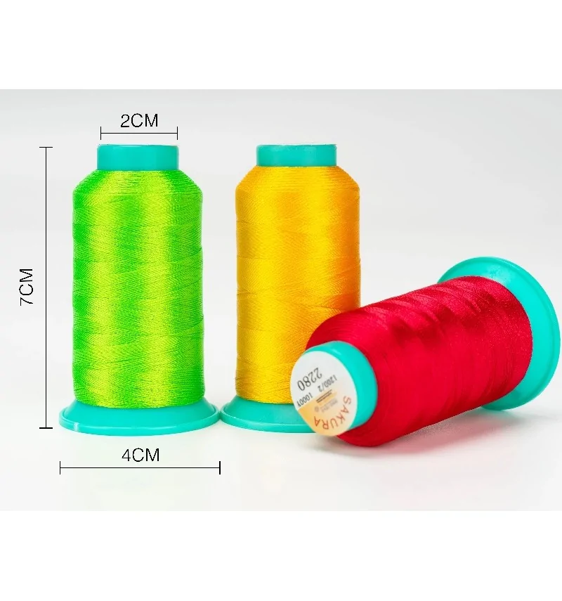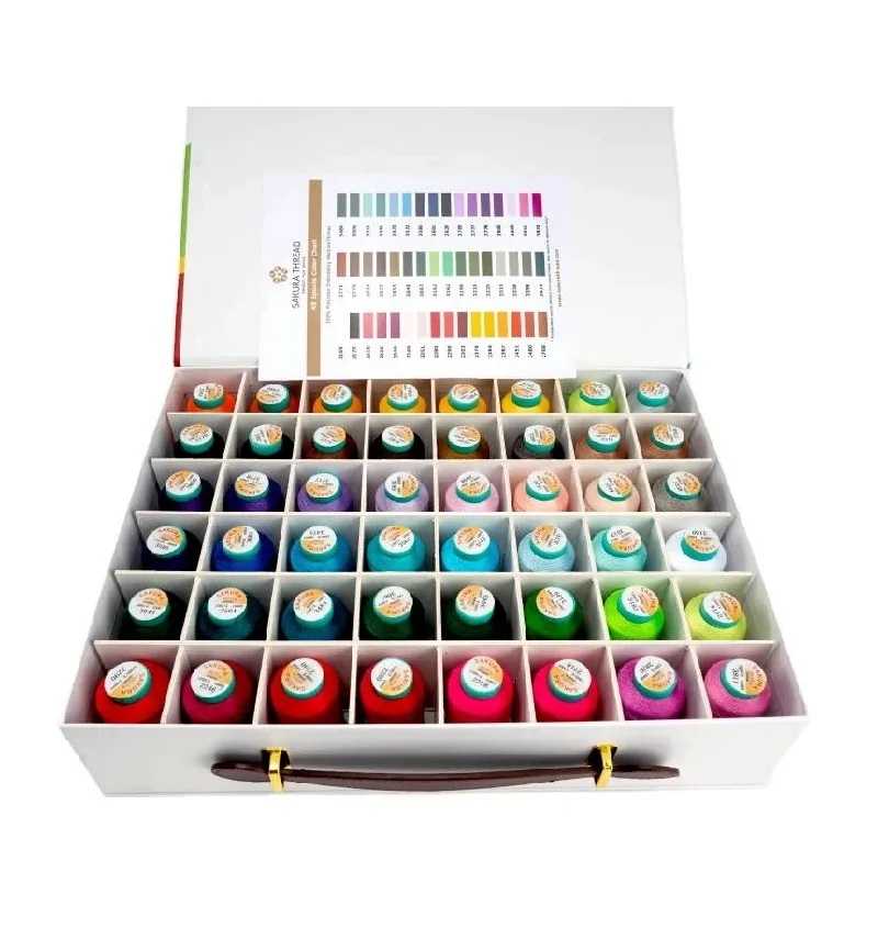 Набір ниток для машинної вишивки SAKURA — 48 кольорів по 1000 ярдів. Міцні поліестерові нитки у подарунковій коробці з ручкою. Підходять для побутових та промислових вишивальних машин.